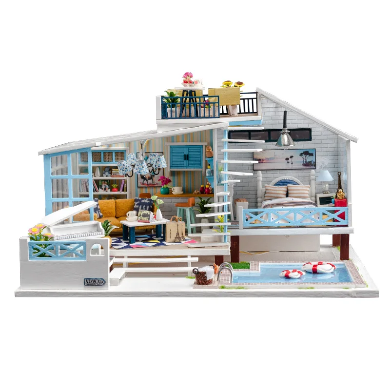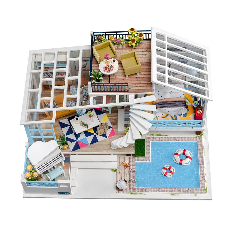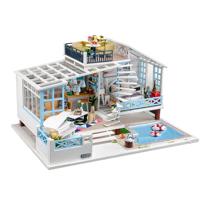 awesome Doll House Kit Big Size Wooden Fashion Dollhouse Furniture with Swimming Pool Handmade DIY Toys for
