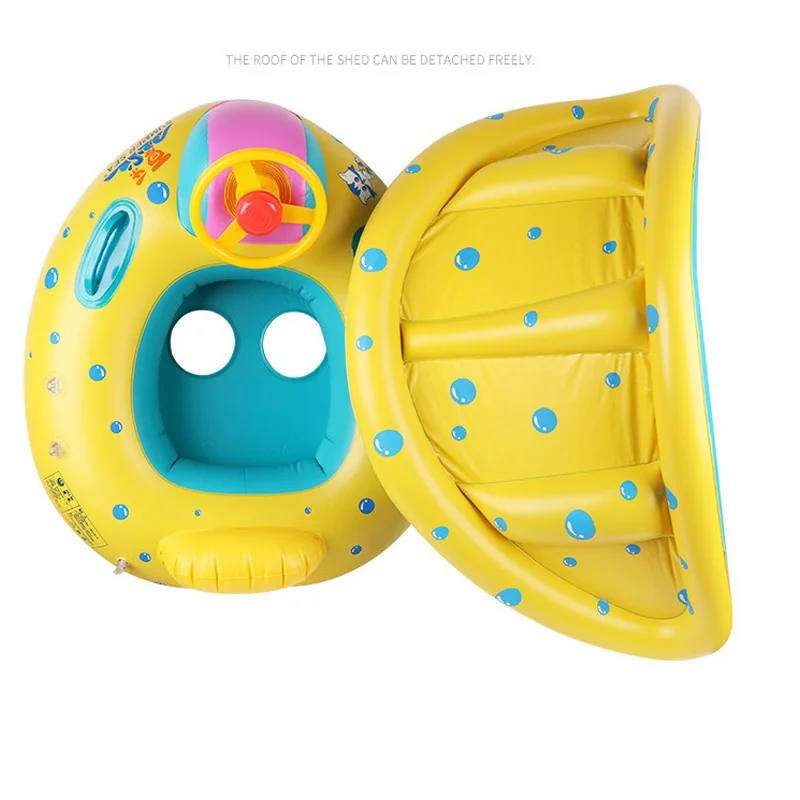 Very best Inflatable Children Float Seat Boat Baby Swimming Ring With Awning Car Seat Steering wheel Water Sp